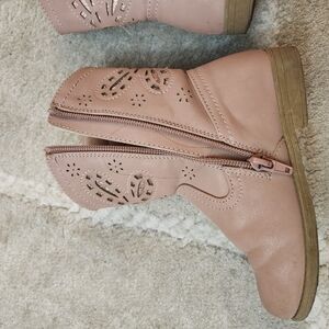 Girls Size 10 Rachel Shoes Pink Cowboy Boots Butterfly Detail Glitter Zippers