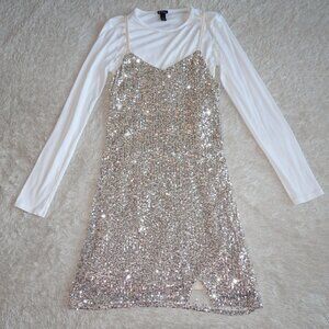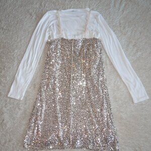 Girls Size 10/12 Art Class Sequin Sparkle Neutral Cream Beige Dress with Shirt