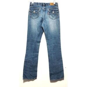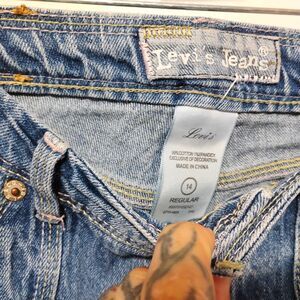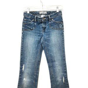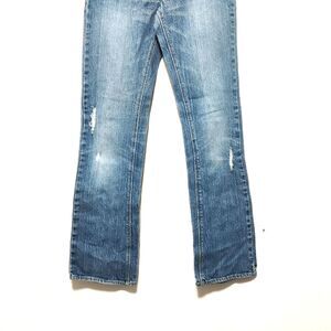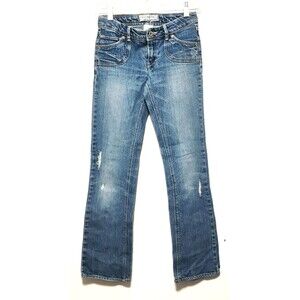 The jeans have a waist size of 26 inches and an inseam of 28 inches, with a classic fit for a size 14. The vintage look is modernized with a distressed style, giving it a trendy edge. Perfect for casual occasions, this jeans is a great addition to any wardrobe.