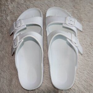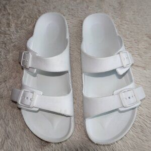 Girls Size 2/3 White Slip On Slide On Double Strap Sandals