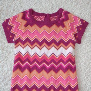 Girls Size 3T Chevron Striped Orange Pink Purple Fall Sweater Short Sleeve Dress
