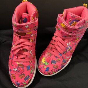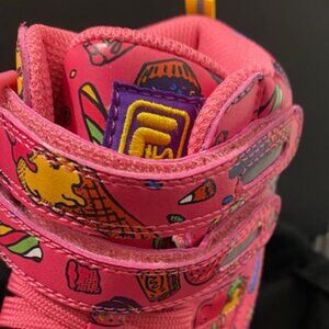 Girl's Size: 4 1/2 Pink Fila A-High-top Snakers w/ Cartoons-style print