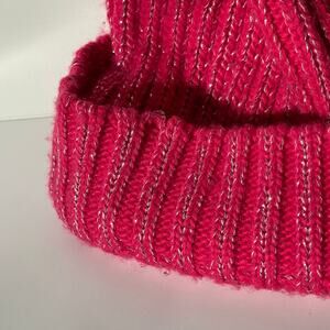 Girls Size 4-16 Pink Beanie Pom Pom Sparkly Pullover Cable Knit Acrylic Blend