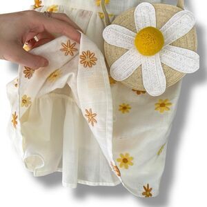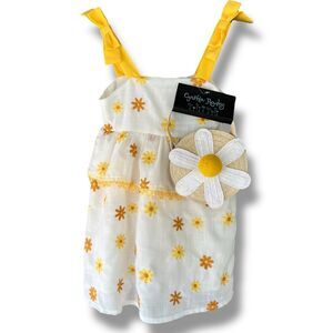Girls Size 4T White & Yellow Daisy Sundress with Matching Purse