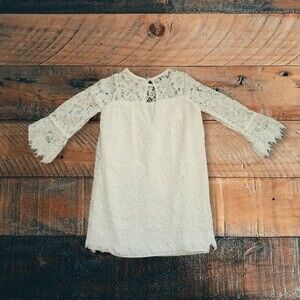 Girls Size 6 David's Bridal Formal White Lace Boho Embroidered Floral Dress