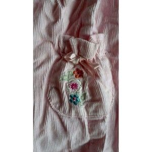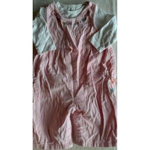 Girl's Size 6-9 M Month Two Piece Pink Floral Corduroy Pant Suspenders & Top