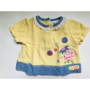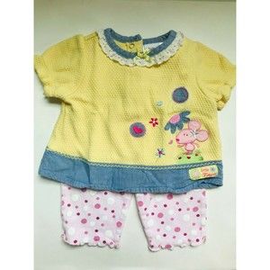 Girl's Size 6M 3-6 Months Two Piece Yellow Floral & Mouse Top & Polka Dot Pants