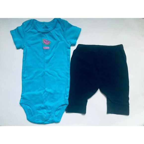 Girl's Size 9M 6-9 Month 2 Piece Blue Watermelon Carter's Top, Black Circo Capri