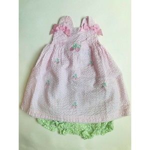 Girls Size 9M 6-9 Months 3 Piece Pink Strawberry Designed Dress, Hat + Bloomer