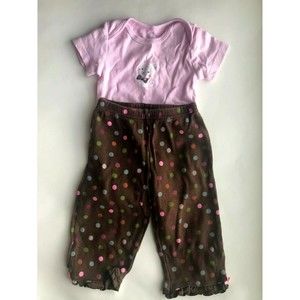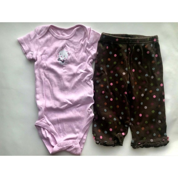 Girl's Size 9M 6-9 Months Two Piece Carter's Pink Kitten & Brown Polka Dot Pants
