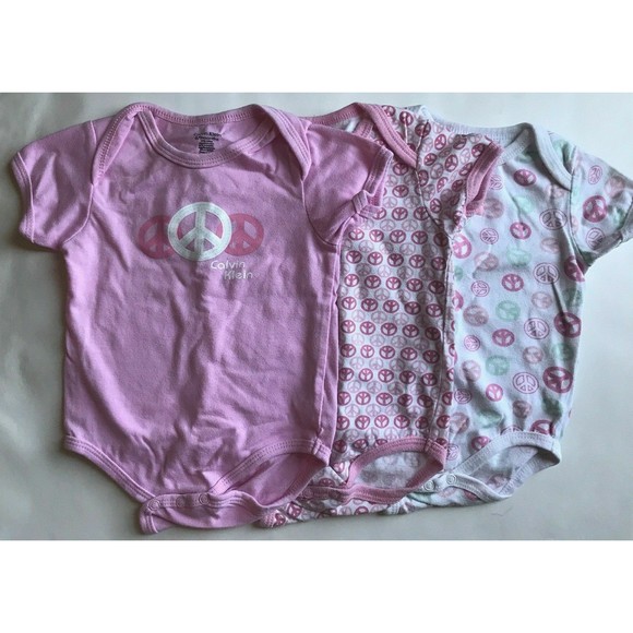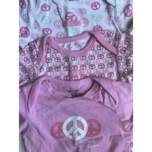 Girl's Size 9m 6-9 Months Lot of 3 Calvin Klein Peace Sign Tops in Pink, White