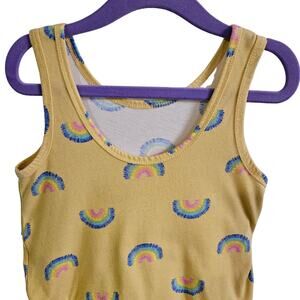Girls Size M Pastel Yellow Peplum Ruffle Tank Top Rainbow Print Preppy