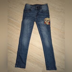 Girls Size Medium 7/8 Jeans With Owl Patch & Green Denim Eyelet Jacket