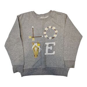 Grey Horse Sweatshirt has a light pink stain on the "O" Size 5/6