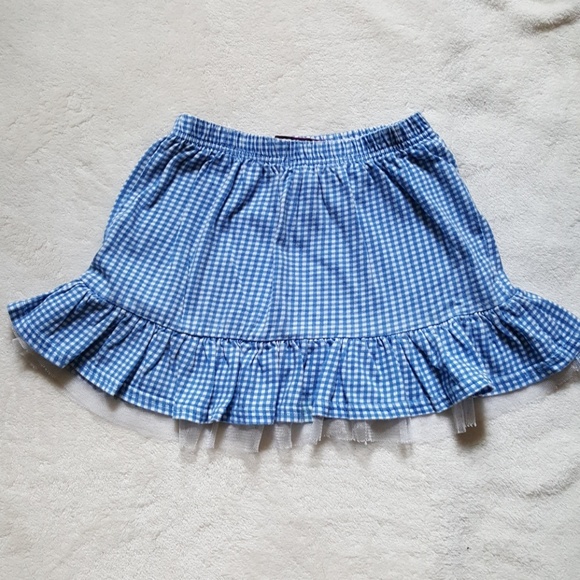 Adorable blue and white gingham skort for back to school. Skirt eith built-in shorts is perfect on the playground. The skirt has a tiny bit of tulle peeking out from underneath. In size 6x amd in great shape.