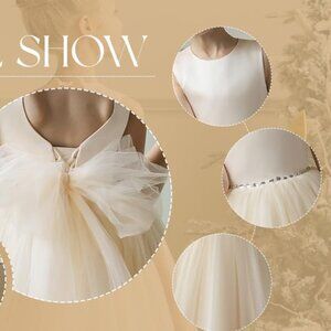 🎀FEATURES-Floor length A-line Soft and Multi-Layer Girl Dress Design. Flower girl's dress features an O-neck backless, high crystal belt and soft tulle big tulle bow. Elegant Girls princess party dress, pageant ball gown.
