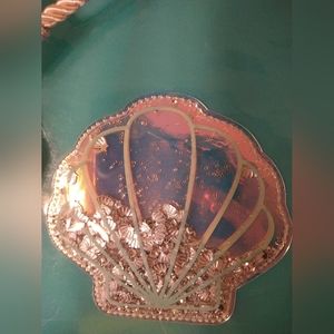 Small seashell backpack with adjustable sequins and an optional side strap.