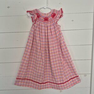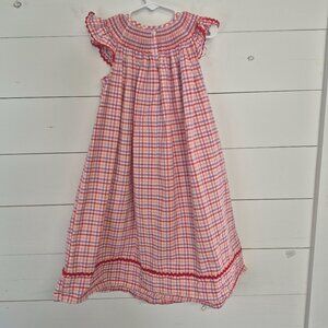 Girls Smocked Gingham Dress With Crab Embroidery & Flutter Sleeves