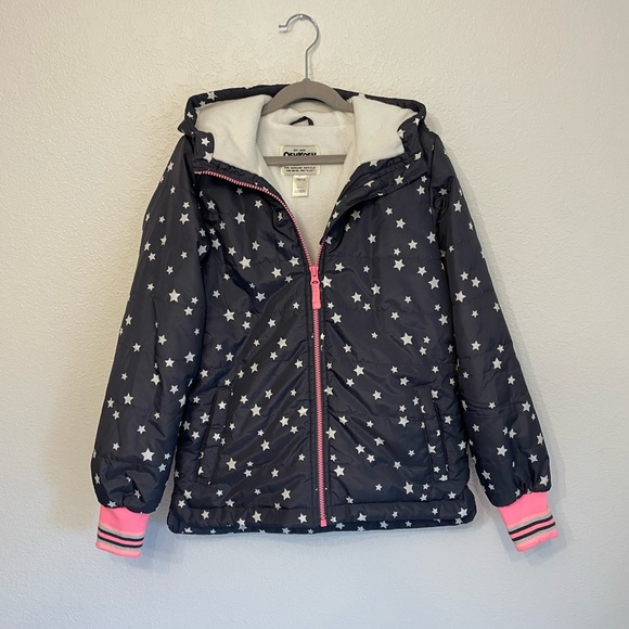 Like new snow jacket for girls! Only worn a few times for one winter season. She wore it when she was 9 and could still fit at 11 (if her style didn’t change). It has pockets and it’s waterproof!