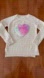 Charming cream sweater with a fuzzy colorful heart design. Soft and cozy for everyday wear.