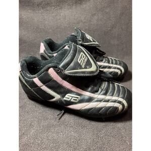 Girls Spot-Bilt Black With Pink And Silver Soccer Cleats Size 2 1/2