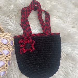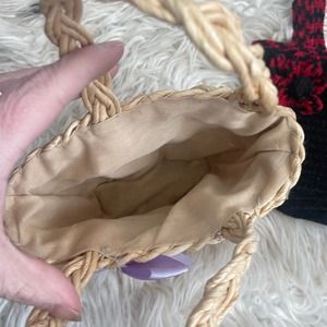 Great for either playing dress up or as an accessory for an Easter dress, spring dress, or flower girl basket. One is wicker with purple ribbon. One is black knit with red flower. Excellent condition