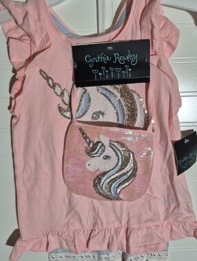 Cynthia Rowley girls small (5/6) pants and sequin tank set with matching velcro close bag. Nwt.