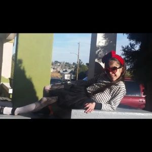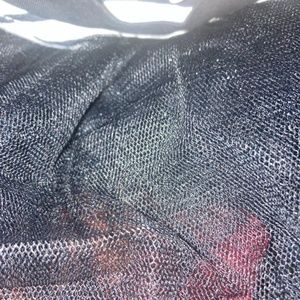 Really pretty striped dress with layers of mesh Tulle skirt. O neck ringer style black matches with black cuff at wrist.