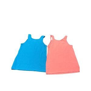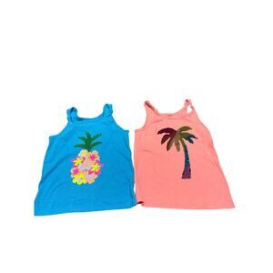 2 Cat & Jack medium 60% cotton, 40% polyester knot strap tank tops- orange with multicolor sequin palm tree; blue with multicolor sequin pineapple