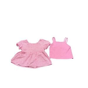 Cat & Jack medium 100% cotton pink & white plaid smocked short puff sleeve peplum blouse