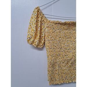 Girls' Summer Cute Crop Tops Sleeve Smocked Floral Blouse Yellow Size S