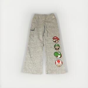 Girls Super Mario Fleece Heather Grey Pants Size Small