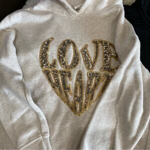 Zara Sweater with sequence graphic that reads "Love Heart"