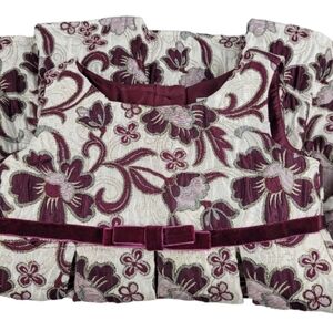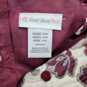 Girls Sweet Heart Rose Floral Applique Dress with gold trim detail, front bow, back tie, sleeveless, fully lined, back button closure, previously owned, like new, size 24 months