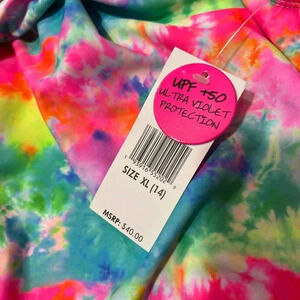 Vibrant colors. 50 ULtra violet protection. Super cute design. Attached ties at the front or back waist. New with tags