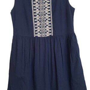 Girl's Sz 10 Vineyard Vines Navy White Cotton Embroidered Summer Dress Pockets