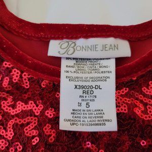 Girls Sz 5 Bonnie Jean Red Spandex Sequin Bodice Stretch Dress Christmas