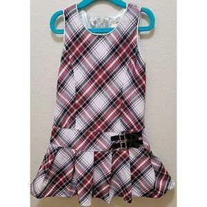 Girls Sz 5 Sleeveless Plaid Lined Pleats Flare Knee Length Dress CHILDRENS PLACE