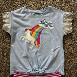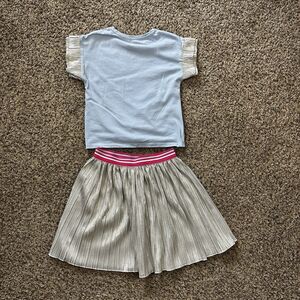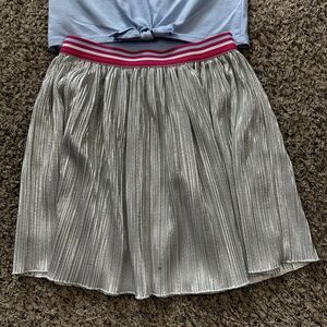 Girls Sz 7/8 365 Kids by Garanimals 2 Piece set Shirt Pleated Skirt Silver Blue