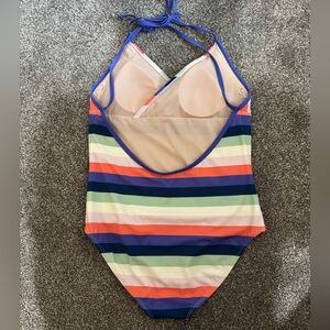 Girl’s TEA multi colored striped one piece halter padded bathing suit 16