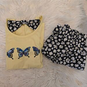 Girls Tank & Skort Set, Size 7/8. Adorable with glittery butterflies and big detailing on the back. Skort is black and white floral print with a bow detail at the waist. Skort has an elastic waistband. Excellent like new conditon. No flaws. This set is so cute! 💛