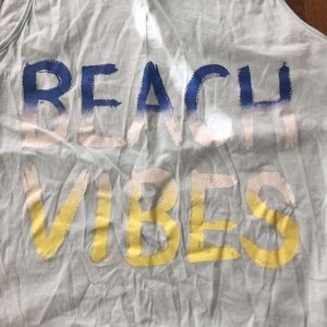 Girls GAP Bright Pink tank top with sequin bordered lettering. Girls H&M Light blue tank top with blue, white, yellow gradient lettering "BEACH VIBES". Both are in great condition no tears/holes, runs or fading. Special pricing for both.