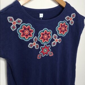 Girls size 6 Tea dress with side pockets. Lighter navy color with embroidered flowers. Only worn a few times.