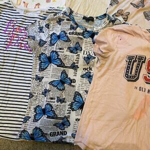 Girls Teen Tees Everyday Shirt Summer Clothes Sz S/M/XL Butterflies Print Lotof6