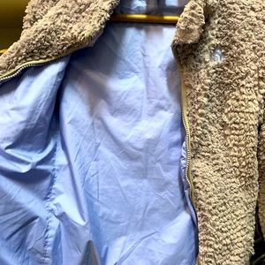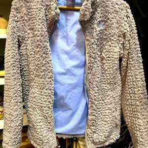 Barely worn, excellent condition, lightweight, soft NorthFace Jacket. Zips up. Grey with baby blue inside.