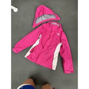 Girls The North Face Pink Grey Hooded HyVent Raincoat Windbreaker Child LG 14/16