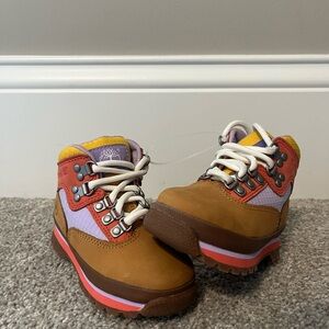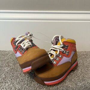 Experience the perfect blend of style and durability with these Timberland boots, featuring a striking red and purple color scheme. Designed with a padded collar for added comfort and a traditional lace-up closure, these boots are ideal for any adventure. The robust construction ensures long-lasting wear, making them a reliable choice for all your outdoor activities.