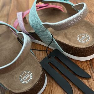 Girls Toddler Pink Blue Shimmer Sandal Toe Loop Cork Bed Various Sizes NWT
