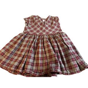 Girls Toddler Size 4T Old Navy Maroon Gray Cotton Plaid Pleated Dress Cap Sleeve