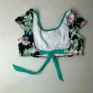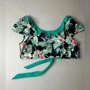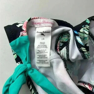 Girls Tommy Bahama Black Green Tropical Floral Bikini Top 14